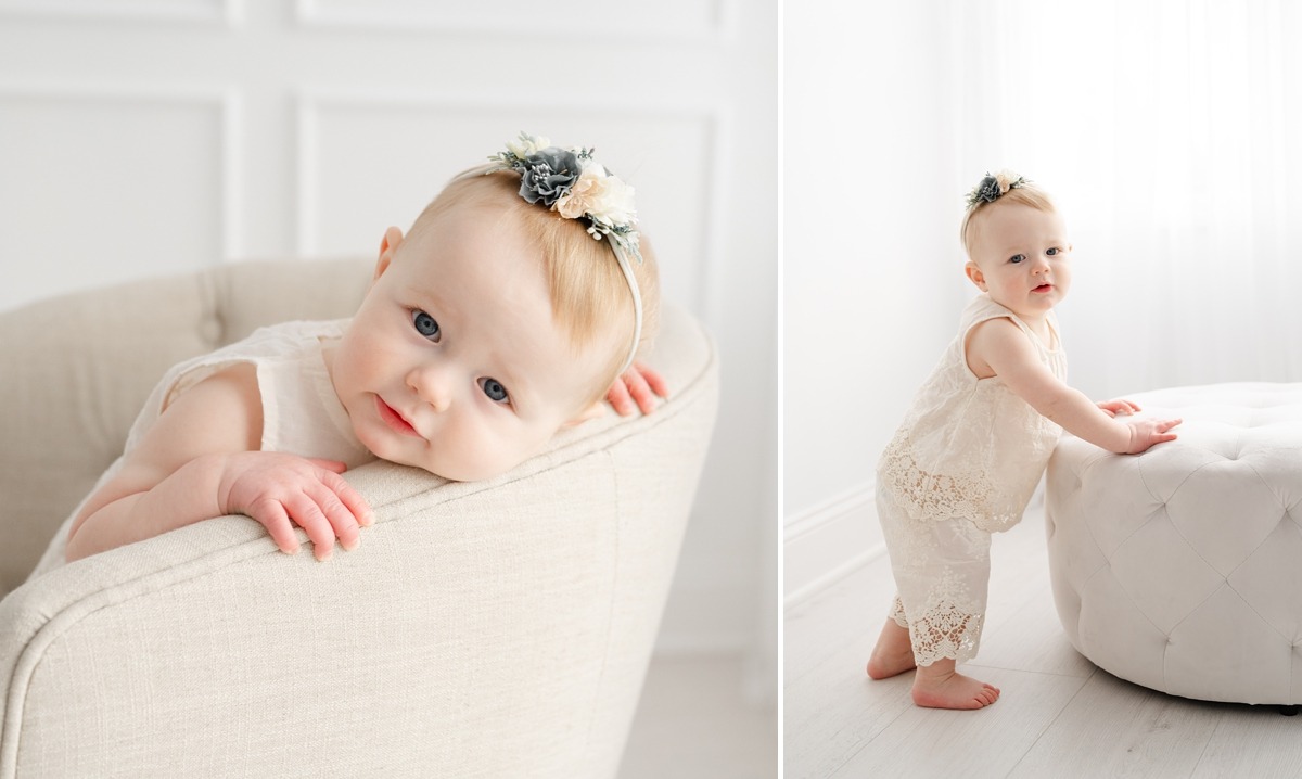 While cake smashes often steal the spotlight (and the frosting!), these sessions are so much more than just cake. We begin with timeless milestone portraits to capture your baby just as they are—sitting, smiling, clapping, exploring—and then ease into the cake smash as a playful finale. It’s the perfect blend of sweet, simple portraits and joyful celebration.