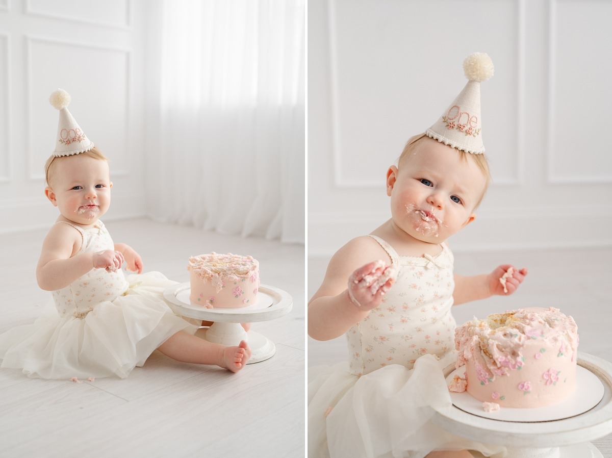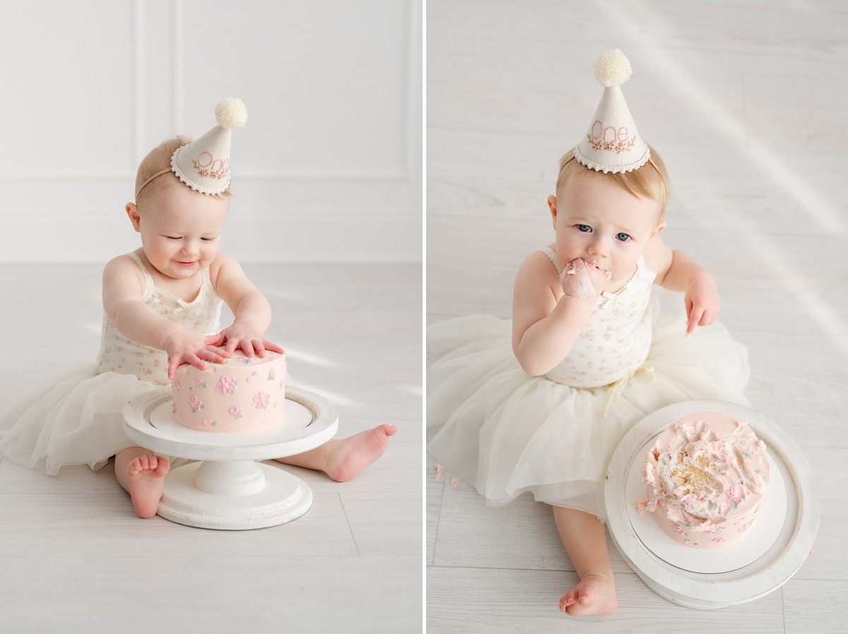 One of the most perfect ways to honor this big milestone? A studio first birthday session—complete with classic portraits and a cake smash to top it off.